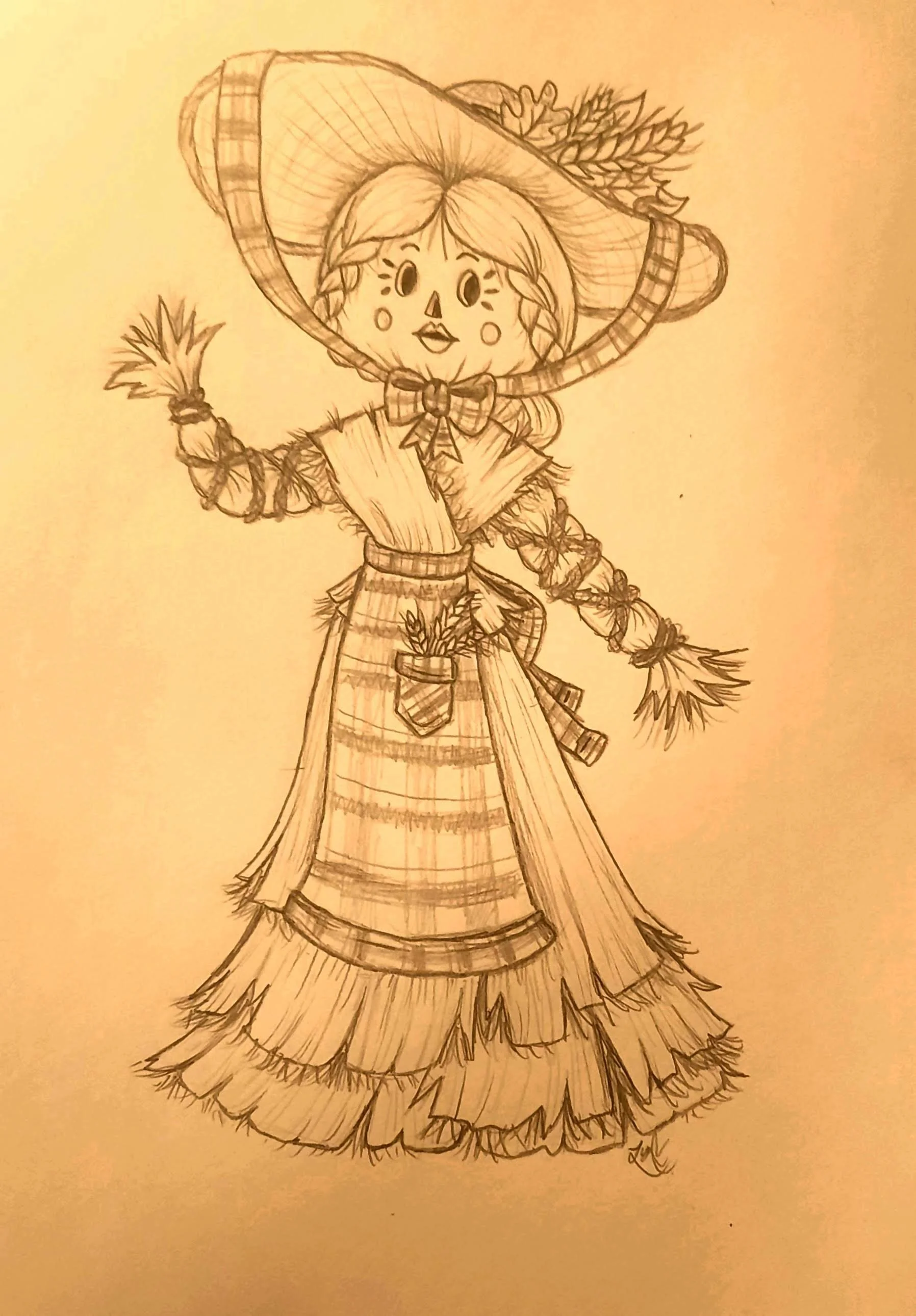 The process was long and treacherous. The dress; measured twice, sowed once. The apron; ruffles embroidered and cinched with detailed pockets. The hat: wired and decorated. With the last brush stroke on the face, it was declared finished.